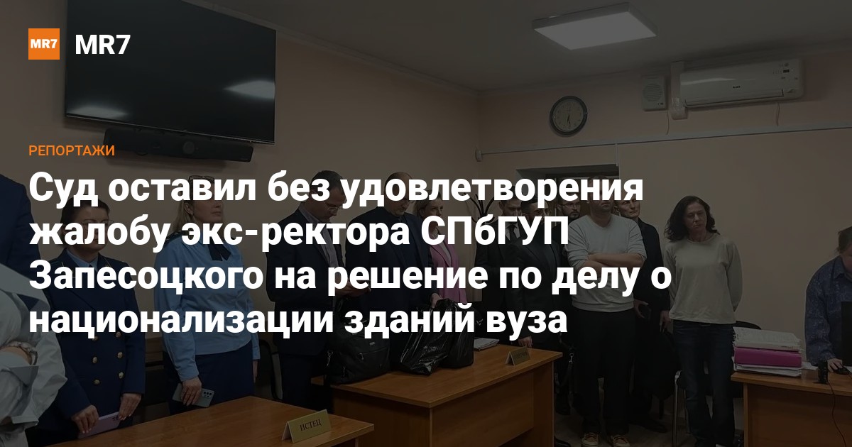 13-й арбитражный апелляционный суд 3 декабря рассмотрел жалобы на решение суда первой инстанции о национализации имущества Университета Профсоюзов (СПбГУП). Добиться пересмотра выигранного Генпрокуратурой дела пытались экс-ректор вуза Александр Запесоцкий, Федерация независимых профсоюзов России (ФНПР) и Всеобщая конфедерация профсоюзов (ВКП) Однако после трёхчасового заседания суд оставил жалобы без удовлетворения.