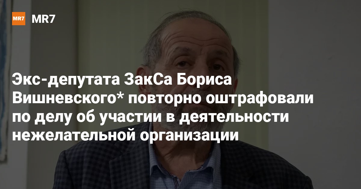 Василеостровский районный суд Петербурга 4 декабря повторно оштрафовал экс-депутата Заксобрания Бориса Вишневского* по делу об участии в деятельности нежелательной организации (статья 20.33 КоАП РФ). Бывшему парламентарию назначили штраф в 15 тысяч рублей — это максимальное наказание по статье, которую вменяли Вишневскому*.