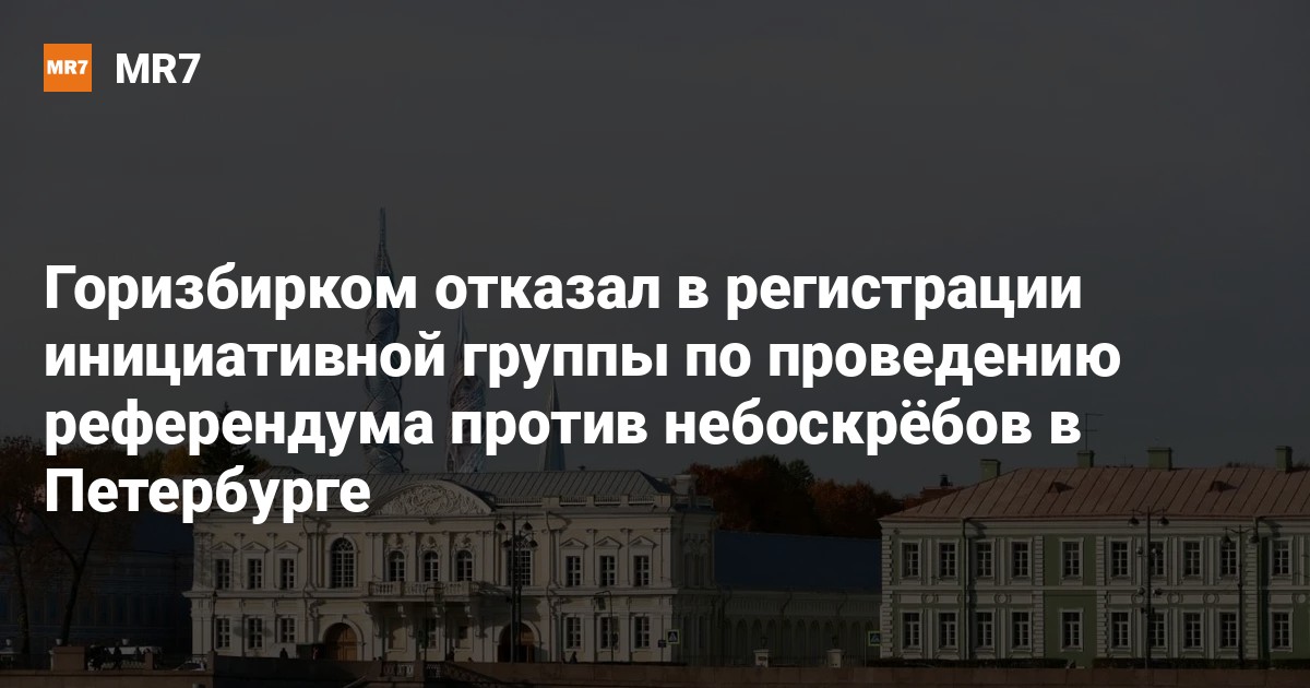 Заявку петербургских градозащитников о проведении в городе референдума по вопросу запрета строительства новых небоскрёбов отклонил Горизбирком (ГИК). Это решение обсудили во время заседания комиссии 4 декабря. Причиной стали «забракованные» подписи — 50 из 338 бланков комиссия признала некорректными, «широко» поставленный вопрос и некорректная процедура проведения собрания.