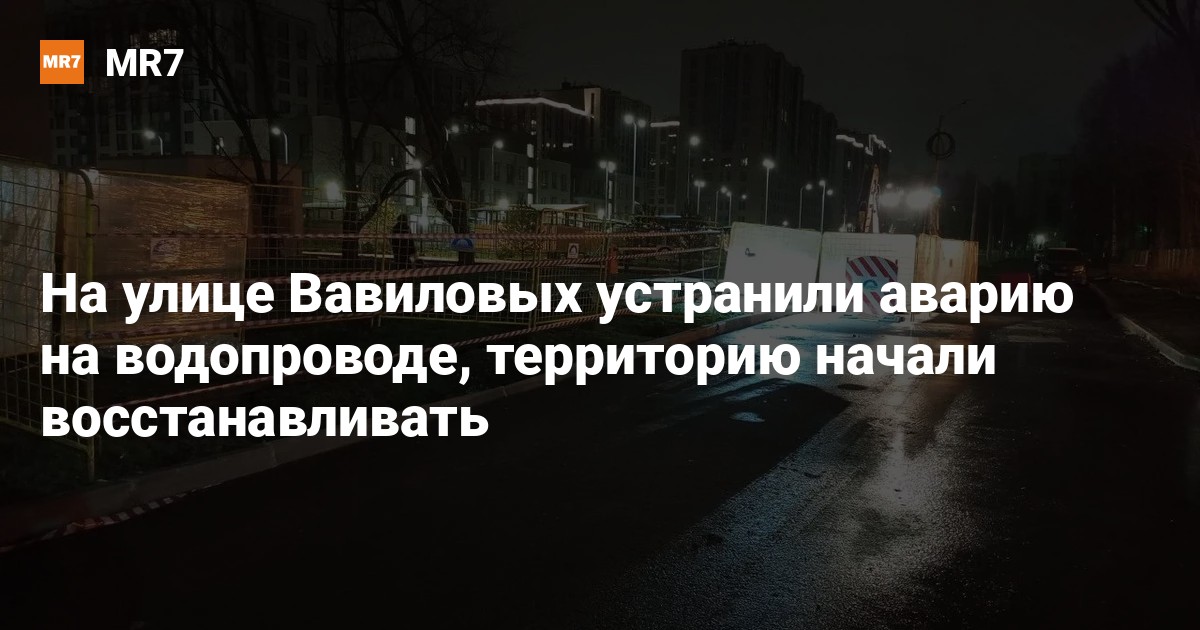 По данным водоканала, аварию на магистрали холодного водоснабжения диаметром 200 миллиметров у дома 4, корпус 2, на улице Вавиловых ликвидировали незадолго до 05:30. Сейчас рабочие приводят территорию в порядок.