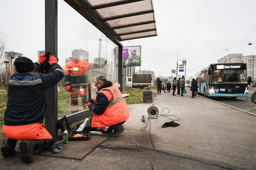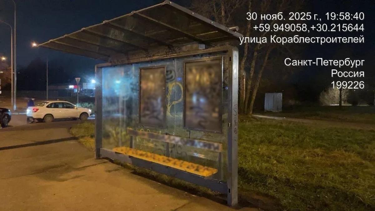 Петербургский комитет по благоустройству 4 декабря доложил о приведении в порядок автобусной остановки на улице Кораблестроителей, в прошлые выходные пострадавшей от рук вандалов.