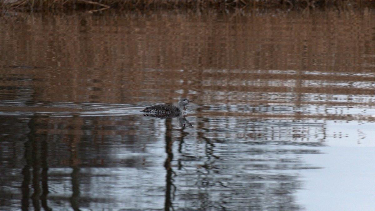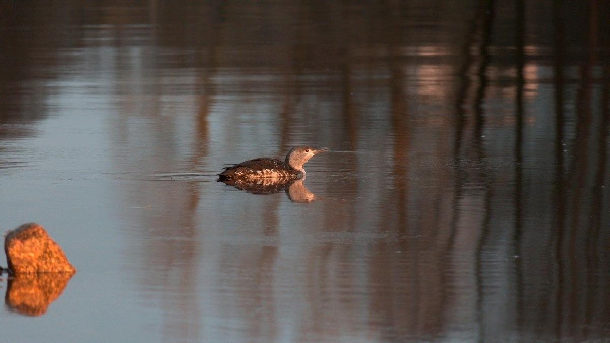 К вечеру гагара ушла на открытую воду залива и, сделав разбег по поверхности, улетела в закатном свете. Возможно, до следующей весны её здесь уже не увидят.