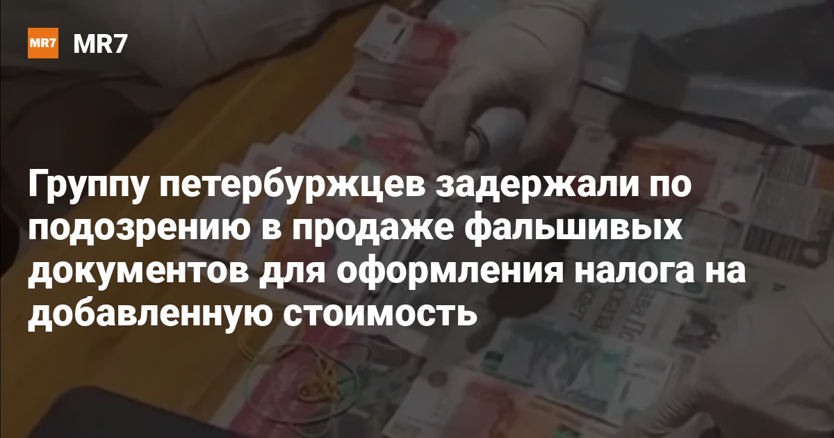 Правоохранители задержали группу петербуржцев по подозрению в изготовлении и распространении фальшивых документов для оформления налога на добавленную стоимость, о чём 8 декабря сообщили в Следственном комитете Петербурга.