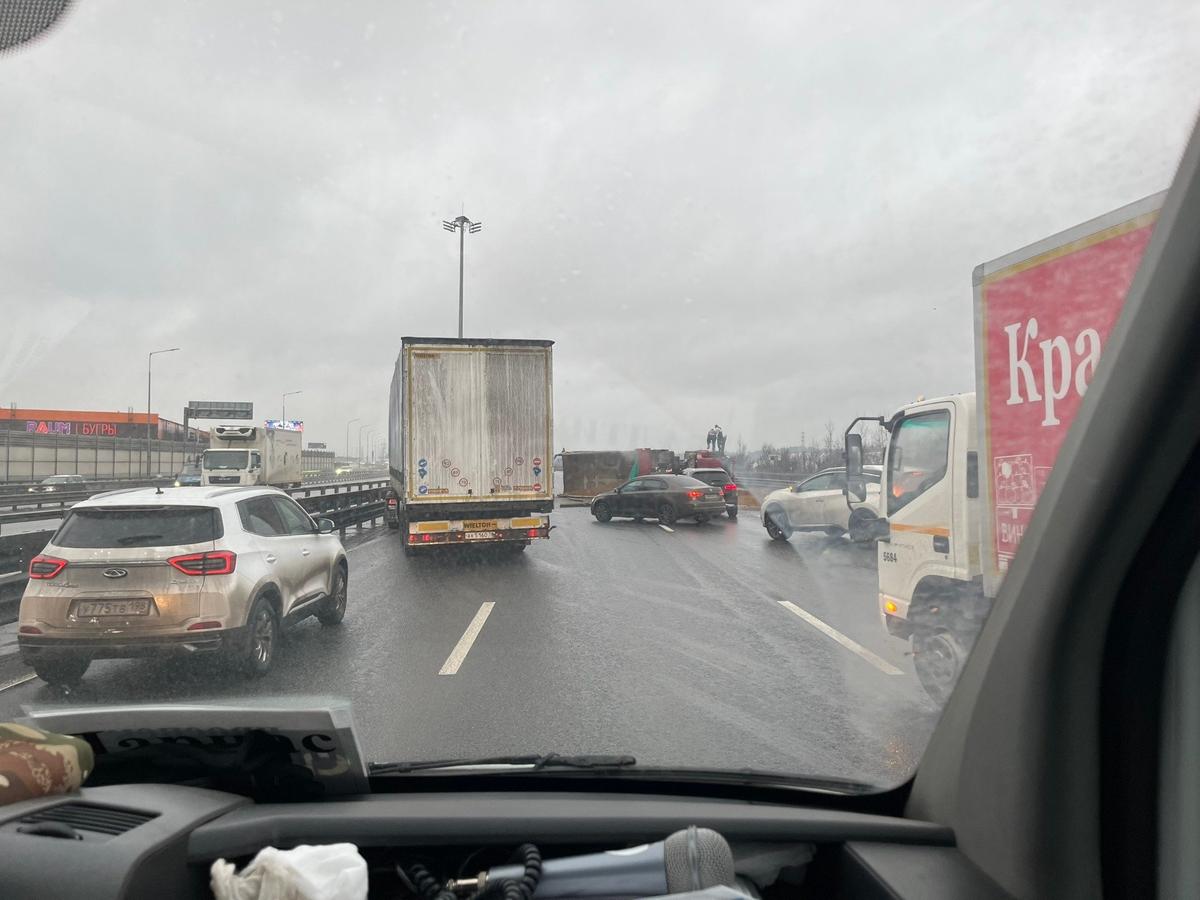 По данным очевидцев, песок рассыпался по дороге, что усложнило расчистку участка и усугубило заторы. Дорожные и экстренные службы уже работают на месте. Информации о пострадавших пока не поступало. Из-за ограничений движения на этом отрезке КАД образовалась значительная пробка.
