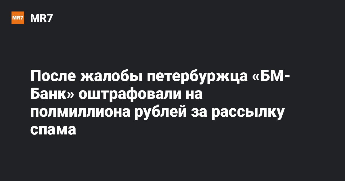 Петербургское управление Федеральной антимонопольной службы выписало штраф в размере 500 тысяч рублей «БМ-Банку», о чем ведомство рассказало 8 декабря. Проверка началась после жалобы гражданина на навязчивую рекламу, на которую он «не подписывался».