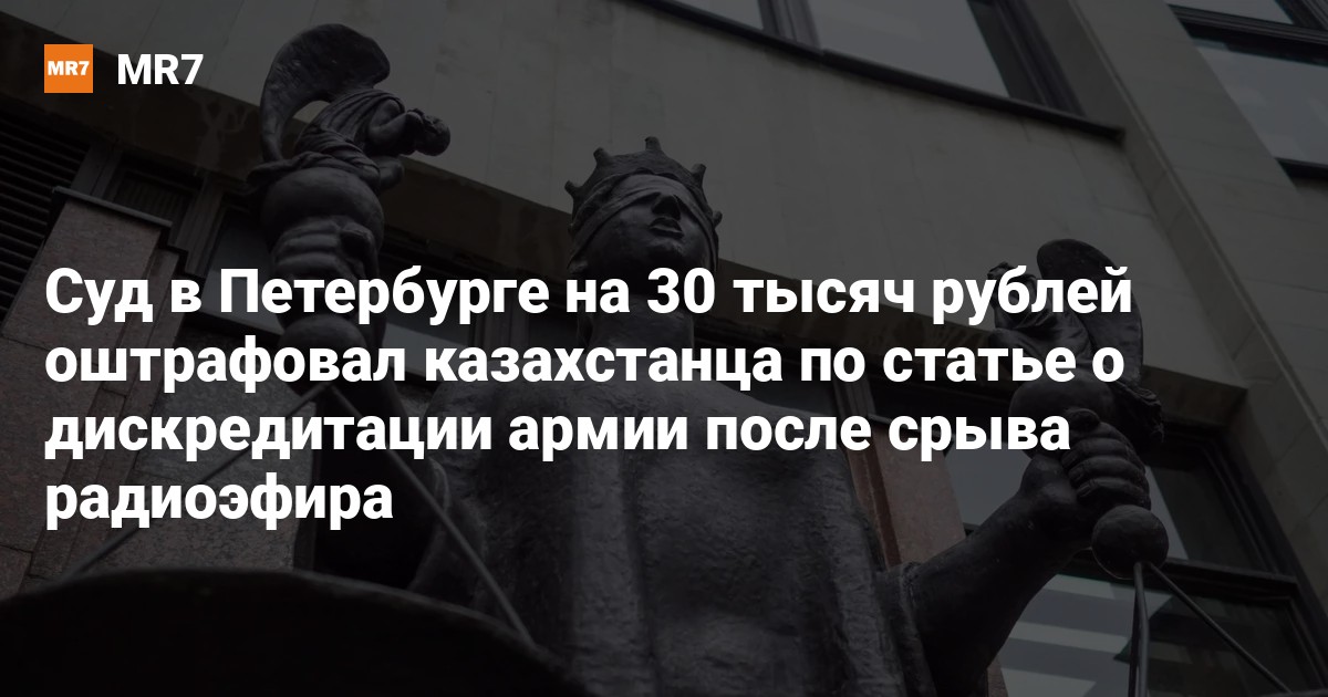Ленинский районный суд 8 декабря на 30 тысяч рублей оштрафовал гражданина Казахстана Нурлана Акинжанова по статье о дискредитации армии, сообщили в объединенной пресс-службе судов Петербурга.