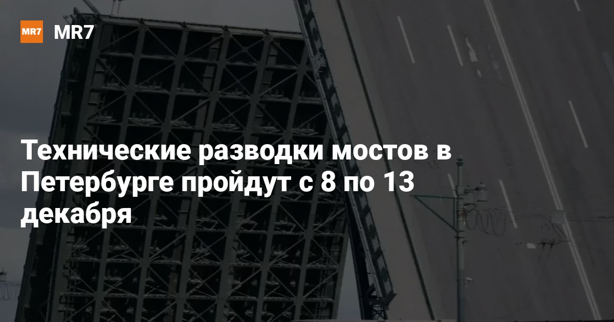 Официальный канал СПб ГБУ «Мостотрест» 8 декабря опубликовал обновлённый график технических разводок мостов, которые проводятся в рамках межнавигационного обслуживания. Работы пройдут в ночное время, чтобы минимально повлиять на транспортную ситуацию в городе.