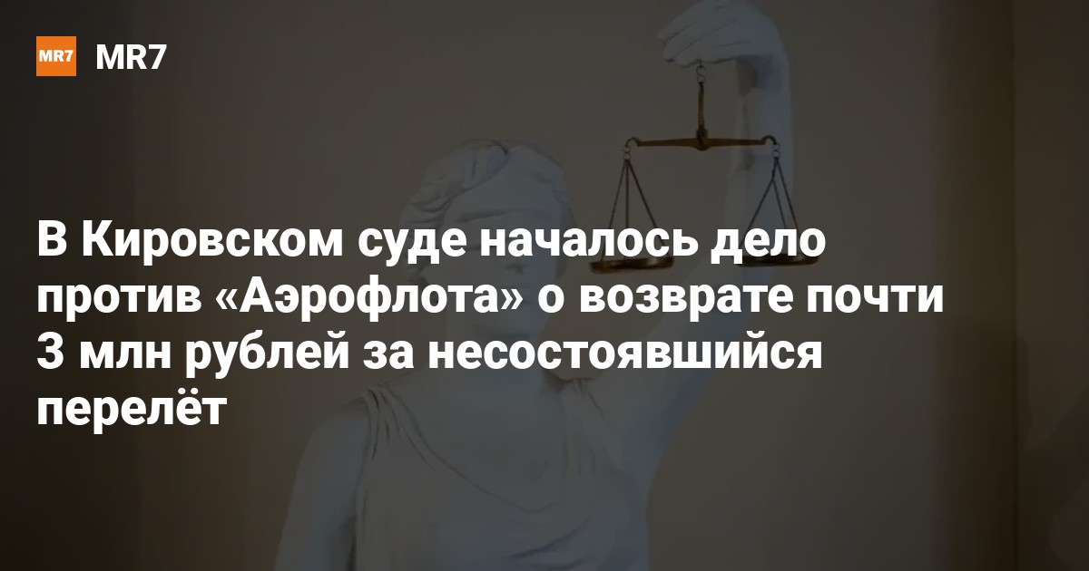 Кировский районный суд Петербурга назначил предварительное заседание по делу против «Аэрофлота». С иском выступили Данил Круговой и ещё четверо пассажиров, которые требуют взыскать с авиакомпании стоимость авиабилетов, неустойку, компенсацию морального вреда и судебный штраф, о чём 8 декабря сообщила руководитель объединённой пресс-службы судов Петербурга Дарья Лебедева.
