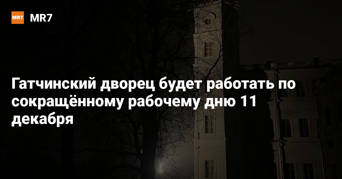 В пресс-службе дворца-музея «Гатчина» сообщили, что 11 декабря доступ в здание будет ограничен: касса и вход закроются в 14:00, а сам дворец завершит работу в 15:00. Причины сокращённого рабочего дня не уточняются.