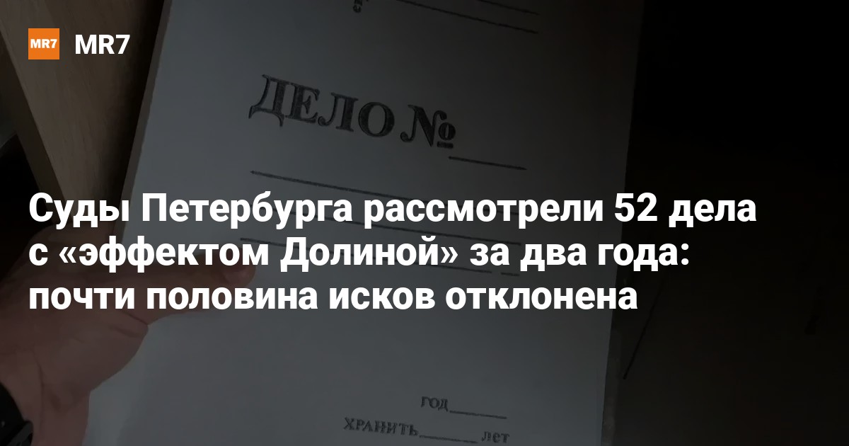 Руководитель объединённой пресс-службы судов Петербурга Дарья Лебедева привела статистику итогов рассмотрения дел, связанных с так называемым «эффектом Долиной». За 2024 и 2025 годы районные суды Петербурга вынесли решения по 52 таким делам, и официальные данные показывают: практика в городе складывается разнонаправленно.