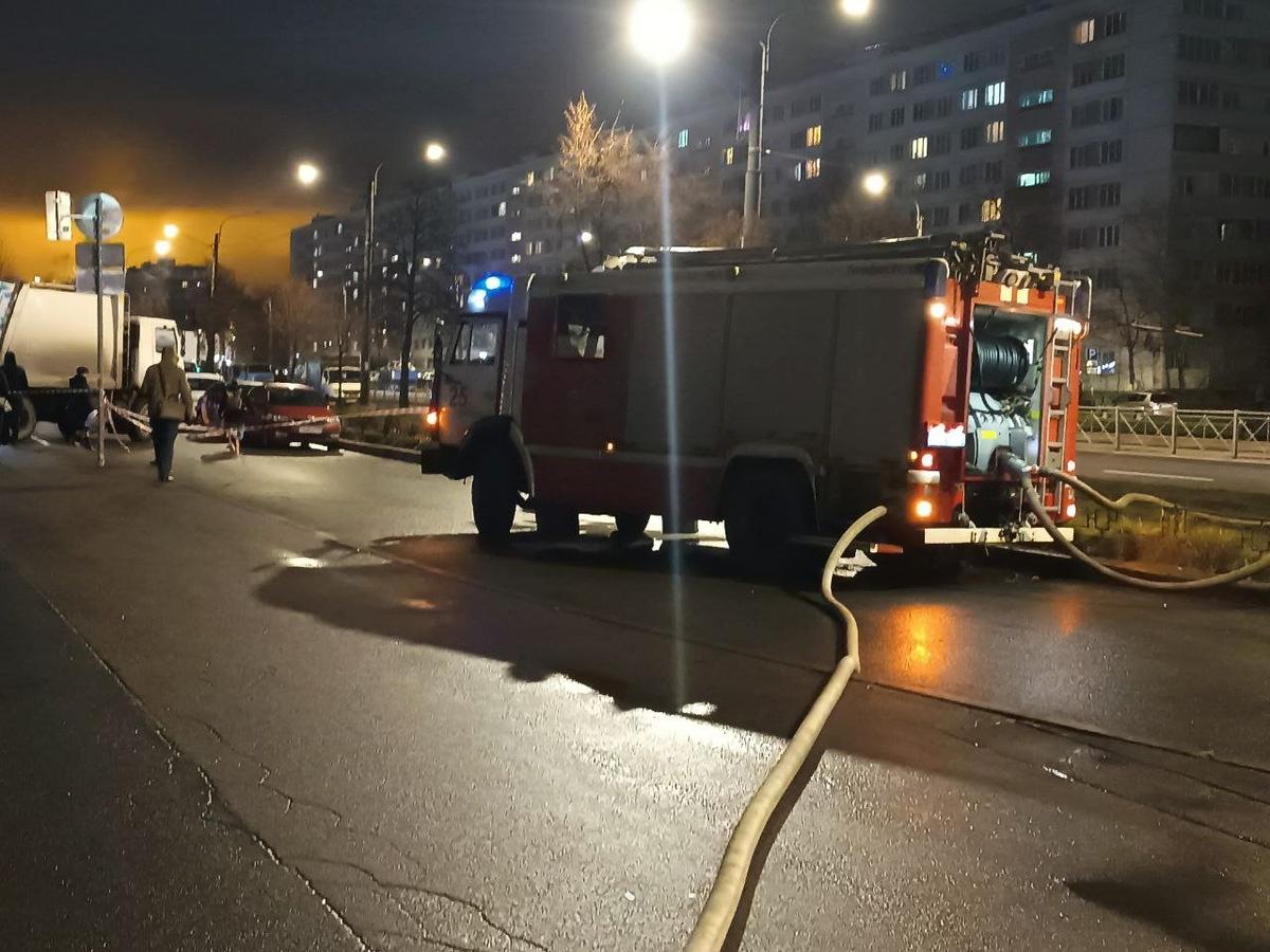 Некоторые люди пытались этим утром забрать свои вещи из близлежащих ларьков, однако их не пропустили. На перекрестке улицы Дыбенко и Искровского проспекта много сигнальных лент, пожарные дают указания прохожим, как именно им надлежит передвигаться. На улице сильно пахнет гарью.