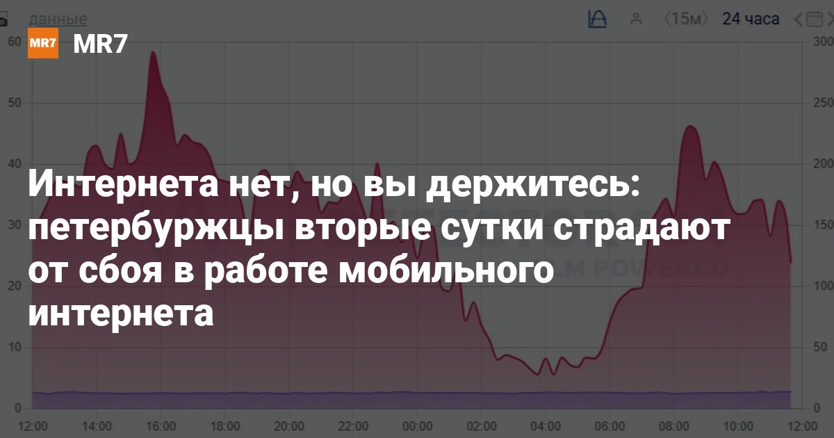 Однако петербуржцы вторые сутки продолжают жаловаться на работу мобильного интернета. Согласно данным сервиса Downdetector, количество жалоб только за сутки почти перевалило за 15 000. В городских пабликах жители города подробно делятся тем, как отсутствие интернета сказывается на их жизни.