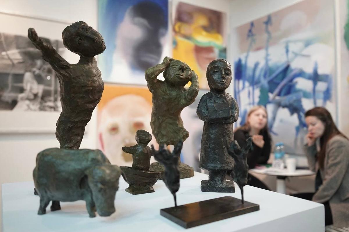 Фигурки Алёны Ковалли, «объекты» Полины Захариной и другие работы на стенде DiDi Gallery. Фото: Павел Борисенко / MR7