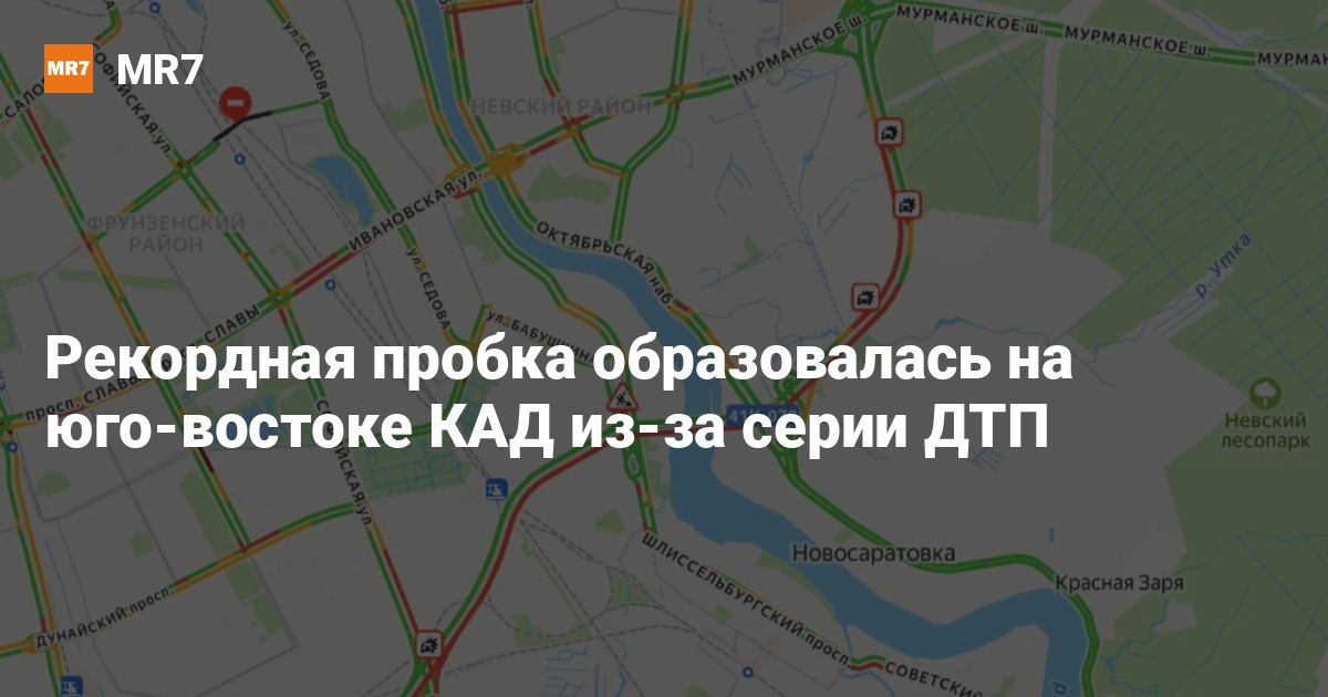 Основной затор на внешнем кольце в районе Софийской улицы и Мурманского шоссе достигал почти 9,6 км — это стало одним из самых крупных заторов за последнее время для данного периода суток.