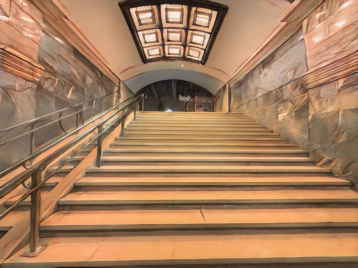 Стены перехода между станциями уже облицованы белым мрамором, завершены работы по укладке напольного покрытия и ступеней из натурального камня.