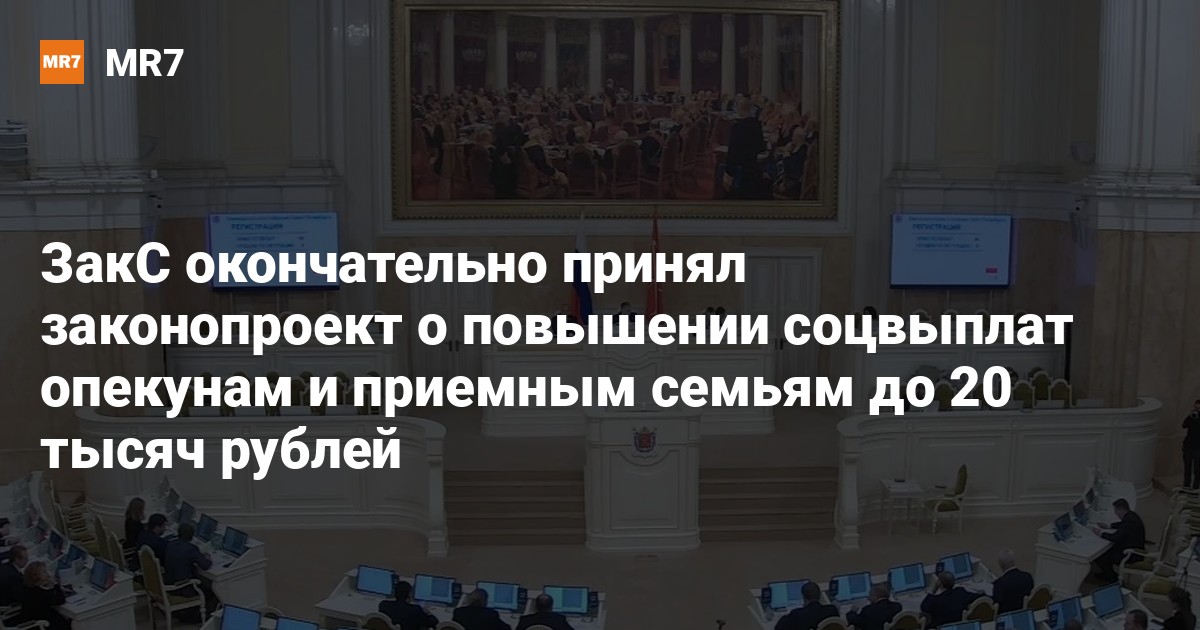 Депутаты петербургского парламента на последнем в 2025 году пленарном заседании приняли в третьем чтении законопроект, по которому социальные выплаты для опекунов и приемных детей увеличиваются до 20 025 рублей в месяц.