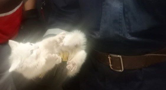 Чтобы выманить испуганное животное, пришлось использовать кусок плинтуса. После этого котенок выбрался наружу и сам прыгнул на руки к спасателю. Снимок, сделанный на месте операции, запечатлел момент, когда кот испугался петли, которую другой участник работ принес для его безопасного извлечения.