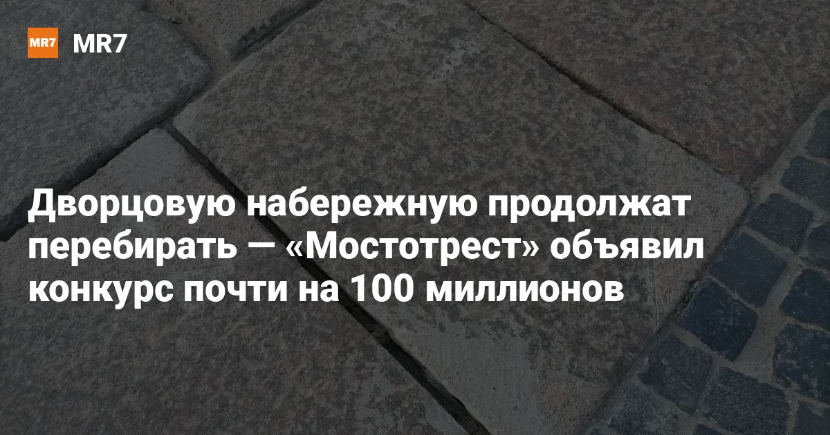 Комитет по госзаказу Петербурга 18 декабря разместил новый тендер на ремонт Дворцовой набережной — на участке от Дворцового моста до Зимней канавки. Заказчик работ — «Мостотрест». Начальная цена 99,9 миллиона рублей со сроком приёмки работ — до 1 декабря 2026 года.