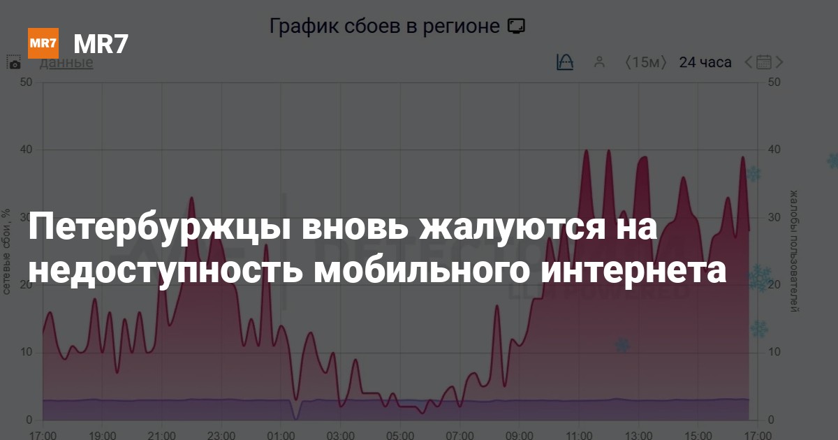 Плохое качество мобильного интернета в Петербурге 21 декабря вновь причиняет неудобства горожанам. Каждый час сайт DownDetector фиксирует свыше ста жалоб. За последние сутки из региона их поступило более 1600. Кто-то недоволен качеством связи МТС, кто-то уверенно пишет, что интернет не ловит у всех операторов.