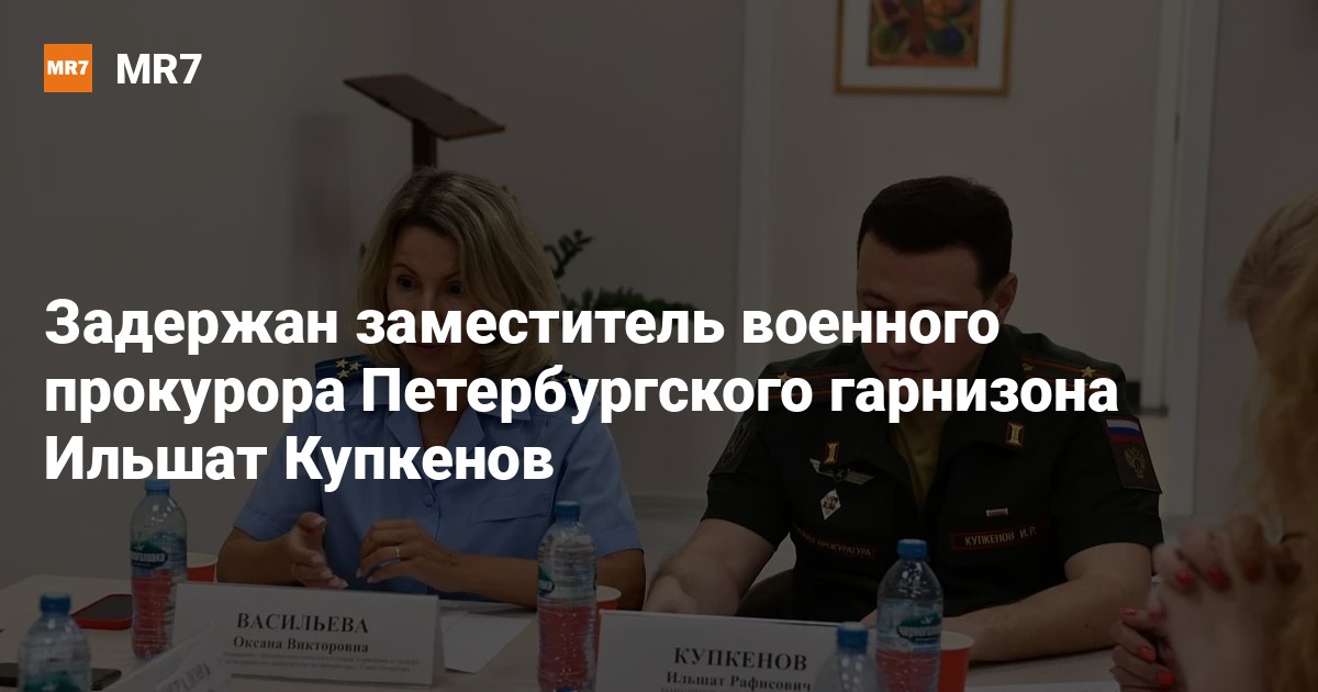 Заместителя военного прокурора Петербургского гарнизона, подполковника юстиции Ильшата Купкенова задержали по обвинению во взятке, сообщает 22 декабря ТАСС со ссылкой на 235-й гарнизонный военный суд.
