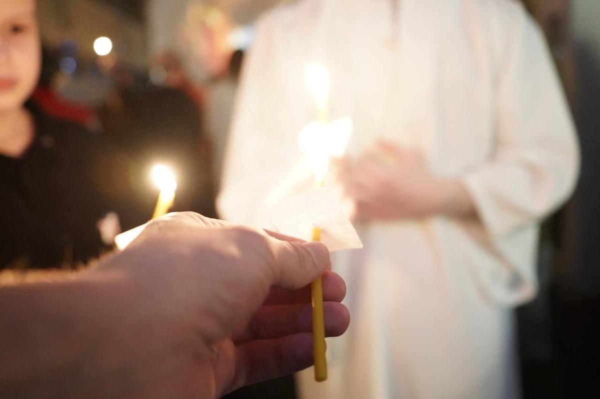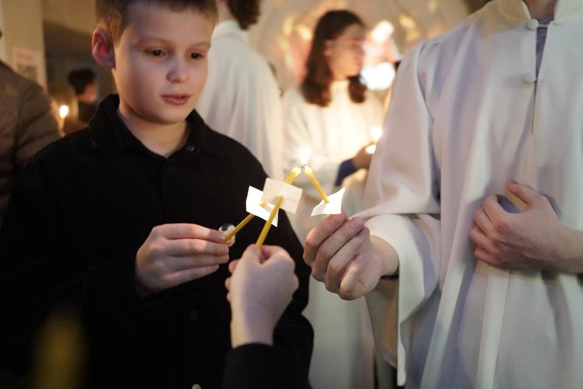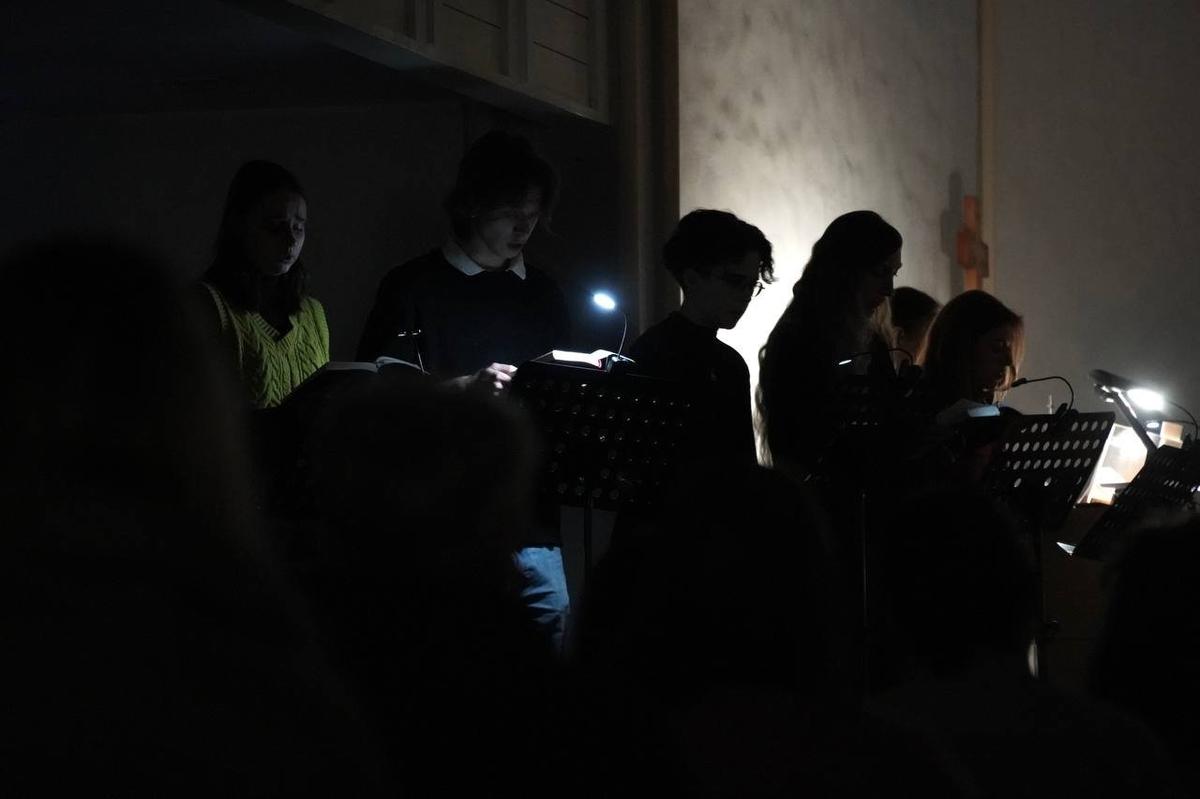 На какое-то время зал погрузился во тьму, а затем озарился огоньками множества свечей — как символ прихода в мир Христа.