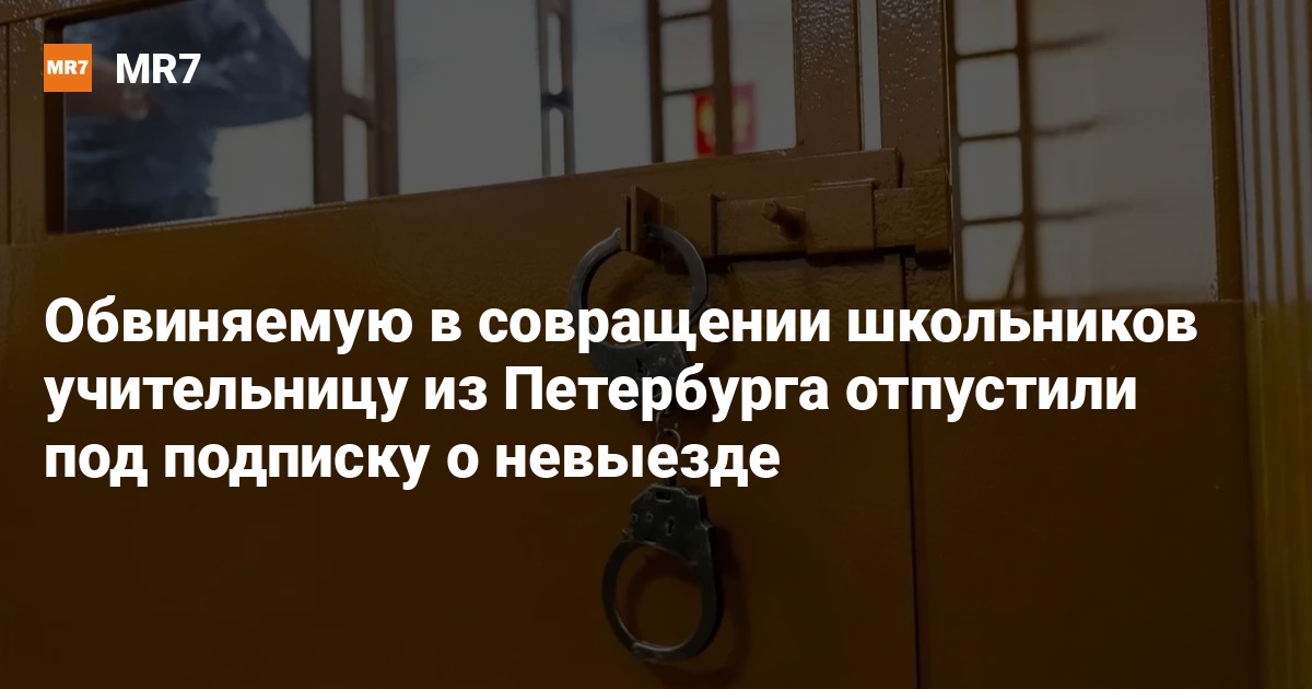 В Петербурге Следком отпустил из СИЗО под подписку о невыезде 22-летнюю учительницу английского языка, обвиняемую в совращении двух малолетних школьников, сообщает 24 декабря «Фонтанка».