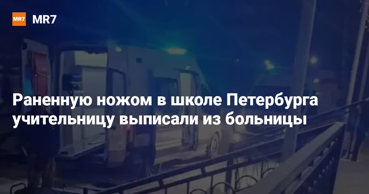 Учительницу, раненную ножом в школе № 191 в Петербурге, выписали из Александровской больницы в удовлетворительном состоянии, сообщает 24 декабря «Фонтанка». Женщина продолжит лечиться амбулаторно.
