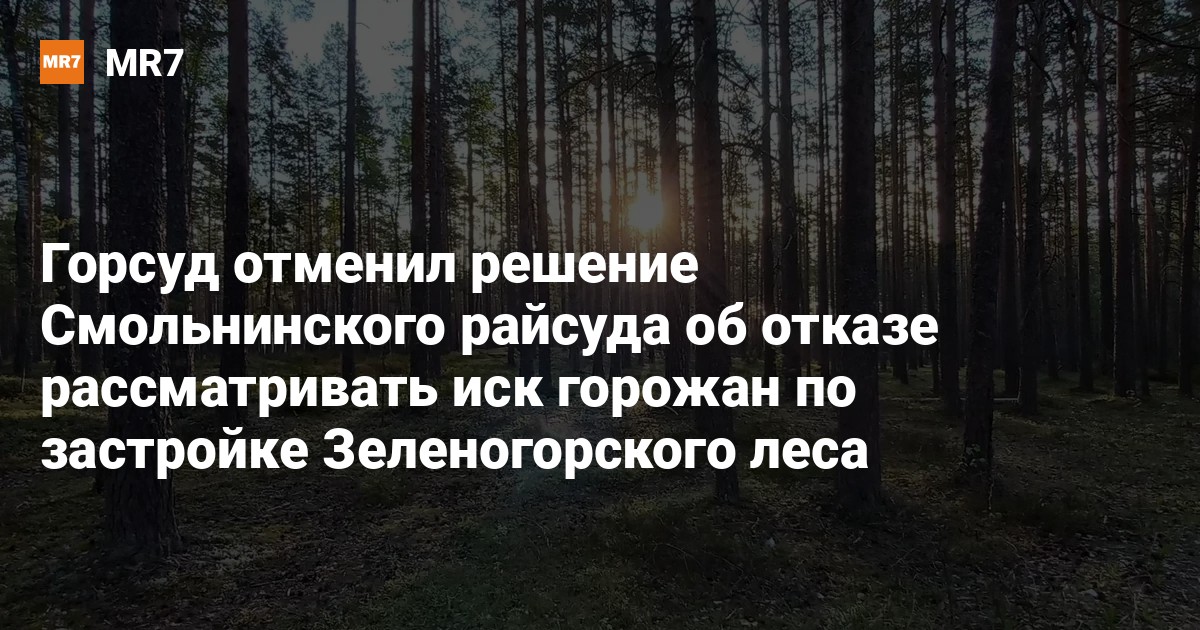 Иск был подан в Смольнинский суд — по месту нахождения предполагаемых ответчиков — ещё в марте этого года. Но на следующий же день судья Александра Заплатина вернула его заявителям, сочтя, что претензии направили не по адресу и их должны изучать в Горсуде. Спустя два месяца активисты вновь попробовали подать тот же иск. На этот раз — в июле — уже судья Игорь Андреев вернул его с той же формулировкой: неподсудно данному суду, но рекомендовал обратиться в Зеленогорский районный суд. Однако Ирина Баханович поясняла, что иск касается не земельного спора, чтобы слушать его по месту нахождения участка. Поэтому в Зеленогорский райсуд заявители обращаться даже не пробовали.