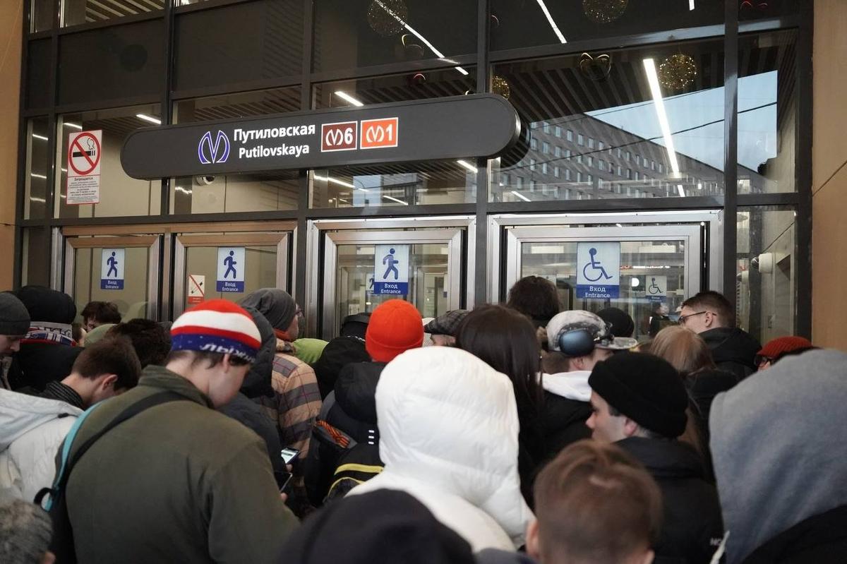 К 15:30 у входа на «Юго-Западную» было уже больше сотни человек. Люди толпились у дверей в ожидании.