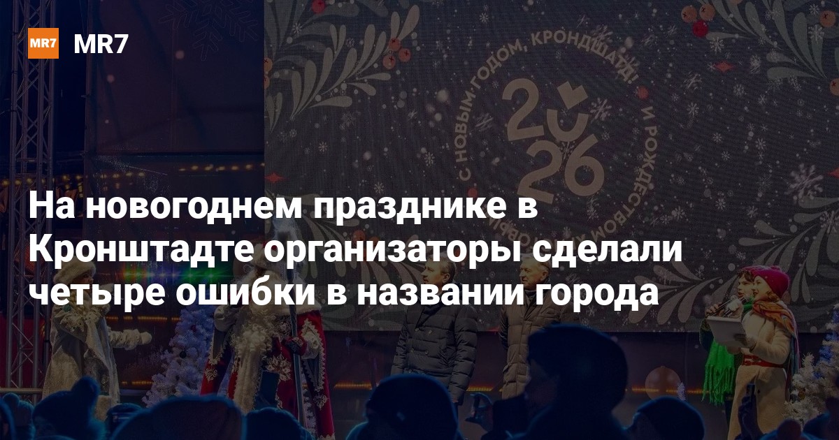 Организаторы новогоднего шоу, прошедшего накануне вечером в Кронштадте, при оформлении сцены сделали в названии самого населенного пункта четыре ошибки.