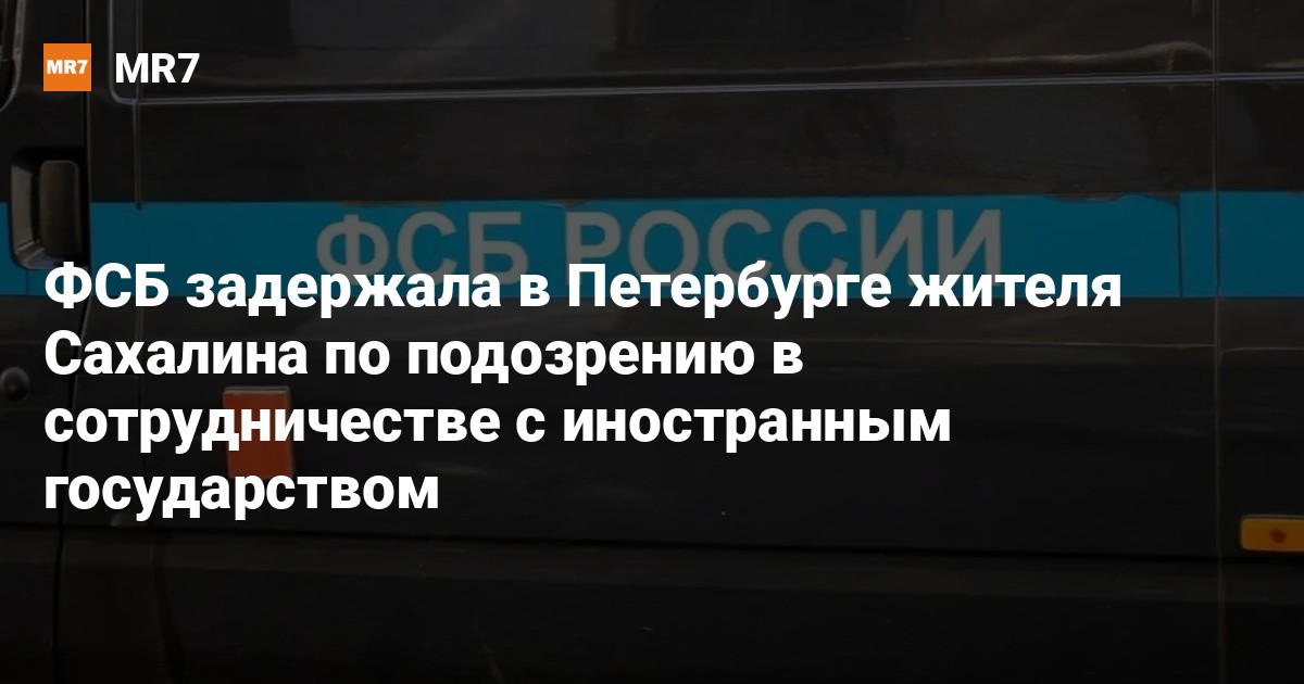 В Петербурге сотрудники ФСБ задержали жителя Сахалинской области по подозрению в сотрудничестве с недружественным иностранным государством, сообщает 30 декабря телеканал «Санкт-Петербург».