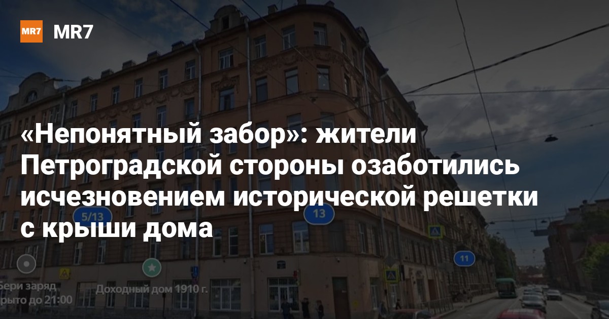 Раньше крышу украшала историческая металлическая решетка. Сегодня на ее месте виднеется конструкция, которую в сообществе «На Петроградской стороне» 30 декабря обозвали «непонятным забором».