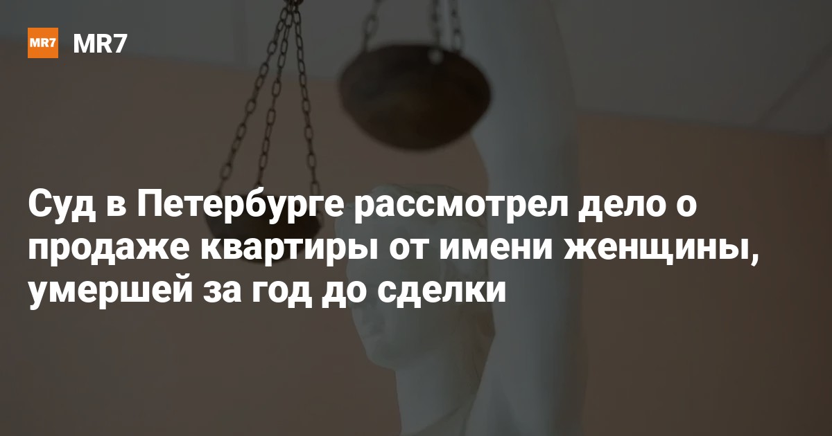 Выборгский районный суд Петербурга 30 декабря при рассмотрении гражданского иска выявил факт мошенничества. Выяснилось, что квартира была продана от имени женщины, которая на момент сделки уже более года как умерла, о чем сообщила руководитель объединенной пресс-службы судов Петербурга Дарья Лебедева.