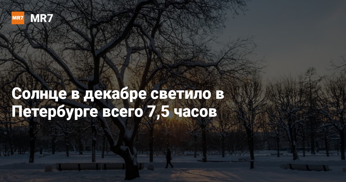 В декабре 2025 года солнце светило в Петербурге всего 7,5 часов — это на полтора часа меньше нормы, рассказал ведущий синоптик города Александр Колесов. Всего за прошлый месяц солнечными были четыре дня, следует из опубликованной специалистом метеограммы.