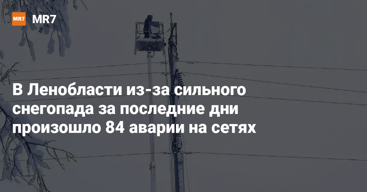 «(…) энергетики Ленобласти устранили 84 технологических сбоя из-за сильного снегопада: 82 — в электросетях и две — в системах теплоснабжения. Все аварии ликвидированы в норматив — до трёх часов», — говорится в сообщении.