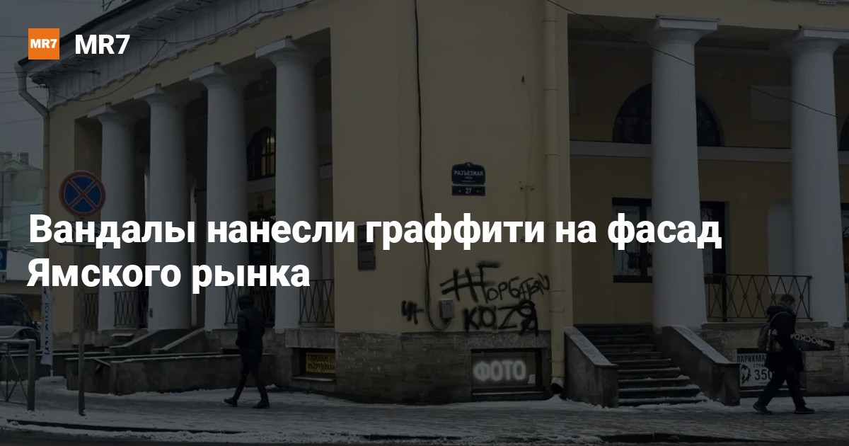 В Петербурге вандалы повредили фасад Ямского рынка, сообщили 3 января в Государственной административно-технической инспекции (ГАТИ). Здание — объект культурного наследия федерального значения.