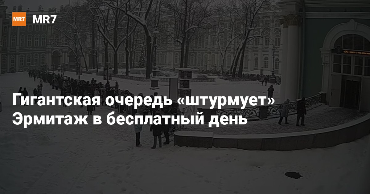 Толпа желающих бесплатно посетить Эрмитаж выстроилась 7 января у входа в музей. Около полудня можно наблюдать, как очередь непрерывно растет.
