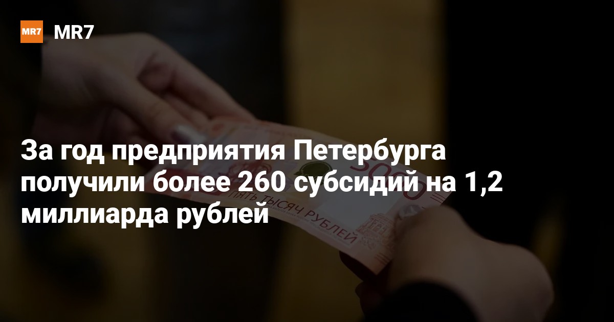 Предприятия Петербурга в 2025 году получили из бюджета города более 260 субсидий. Общая сумма по ним составила более 1,2 миллиарда рублей, сообщили 9 января в пресс-службе губернатора.