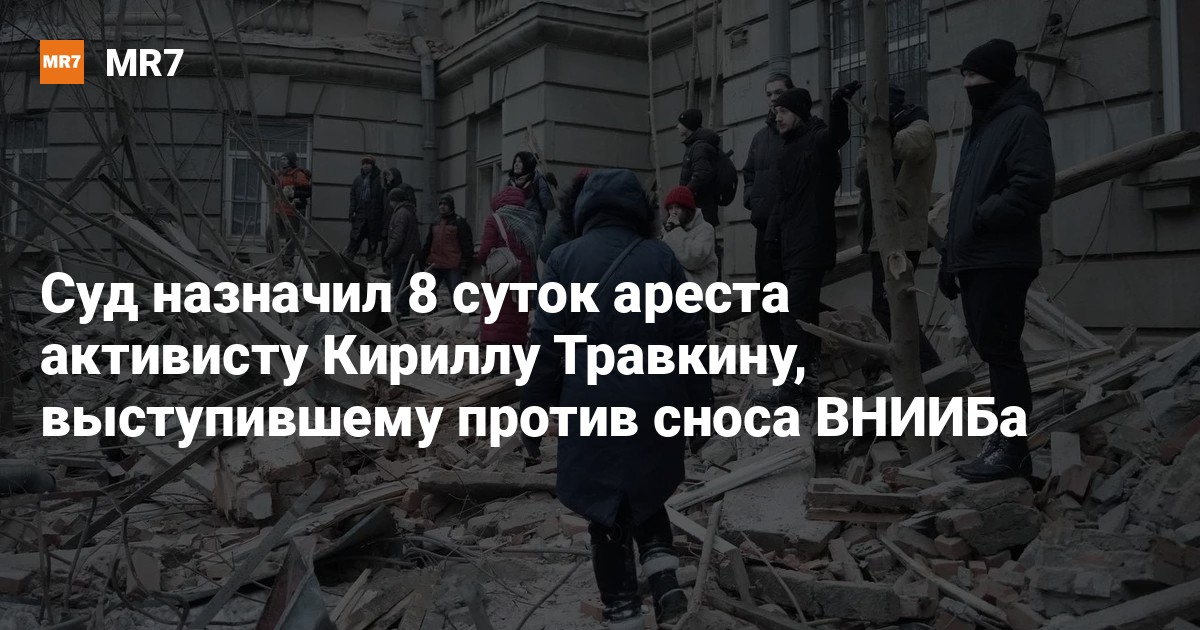 Сегодня в Выборгском районном суде Петербурга прошло заседание по делу активиста незарегистрированной партии «Другая Россия Э. В. Лимонова» Кирилла Травкина, задержанного во время протестов против сноса здания ВНИИБа на площади Мужества. Его признали виновным по статье о «мелком хулиганстве» (ч. 1 ст. 20.1 КоАП РФ) и назначили 8 суток административного ареста.