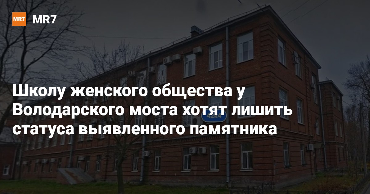 Администрация Невского района заказала историко-культурную экспертизу здания школы Императорского женского патриотического общества (улица Бабушкина, дом 42, корпус 4). Как рассказало 13 января издание «Канонер», автор экспертизы Тамара Егорова предложила снять со здания статус вновь выявленного объекта культурного наследия. КГИОП присвоил его школе в 2001 году.