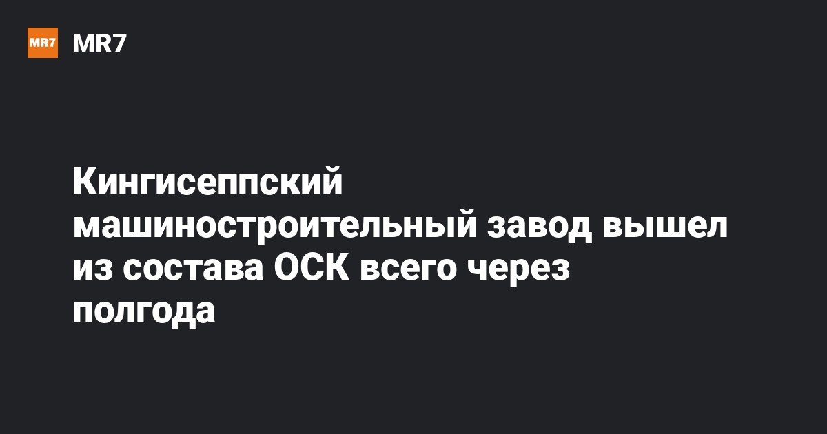 Кингисеппский машиностроительный завод вышел из состава ОСК всего через полгода