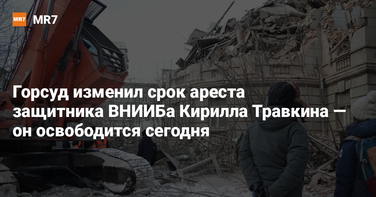 Горсуд изменил срок ареста защитника бывшего здания НИИ бумажной промышленности (ВНИИБ) Кирилла Травкина — он освободится сегодня, 14 января около 13:45, сообщает адвокат Алексей Калугин.