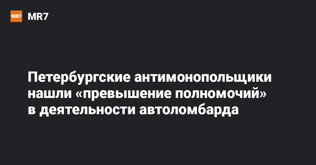 Петербургские антимонопольщики нашли «превышение полномочий» в деятельности автоломбарда