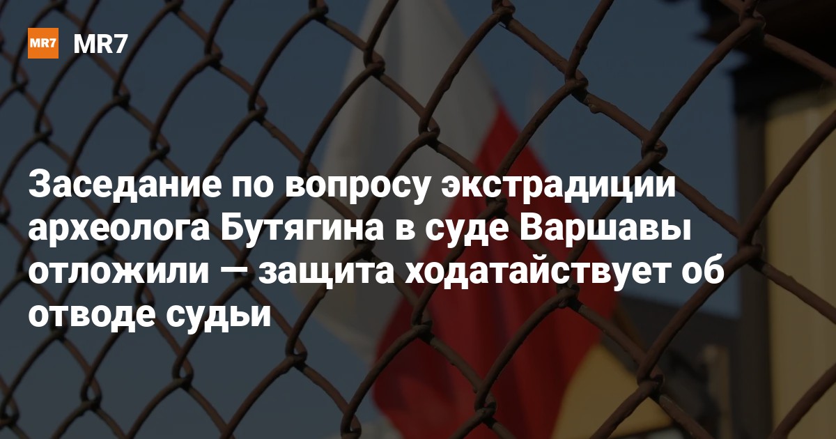 Вопрос об экстрадиции российского археолога Александра Бутягина на Украину в рамках дела о раскопках в Крыму начали рассматривать 15 января в Окружном суде Варшавы. Решение пока не принято — заседание отложили после ходатайства стороны защиты об отводе судьи Дариуша Лубовского, сообщает РИА «Новости».