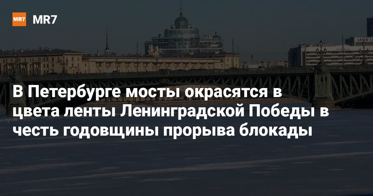В день 83-й годовщины прорыва блокады Ленинграда, 18 января, три моста через Неву в Петербурге будут подсвечены в цвета знаменитой ленты Ленинградской Победы — оливковый и зелёный, о чем сообщили в Смольном.