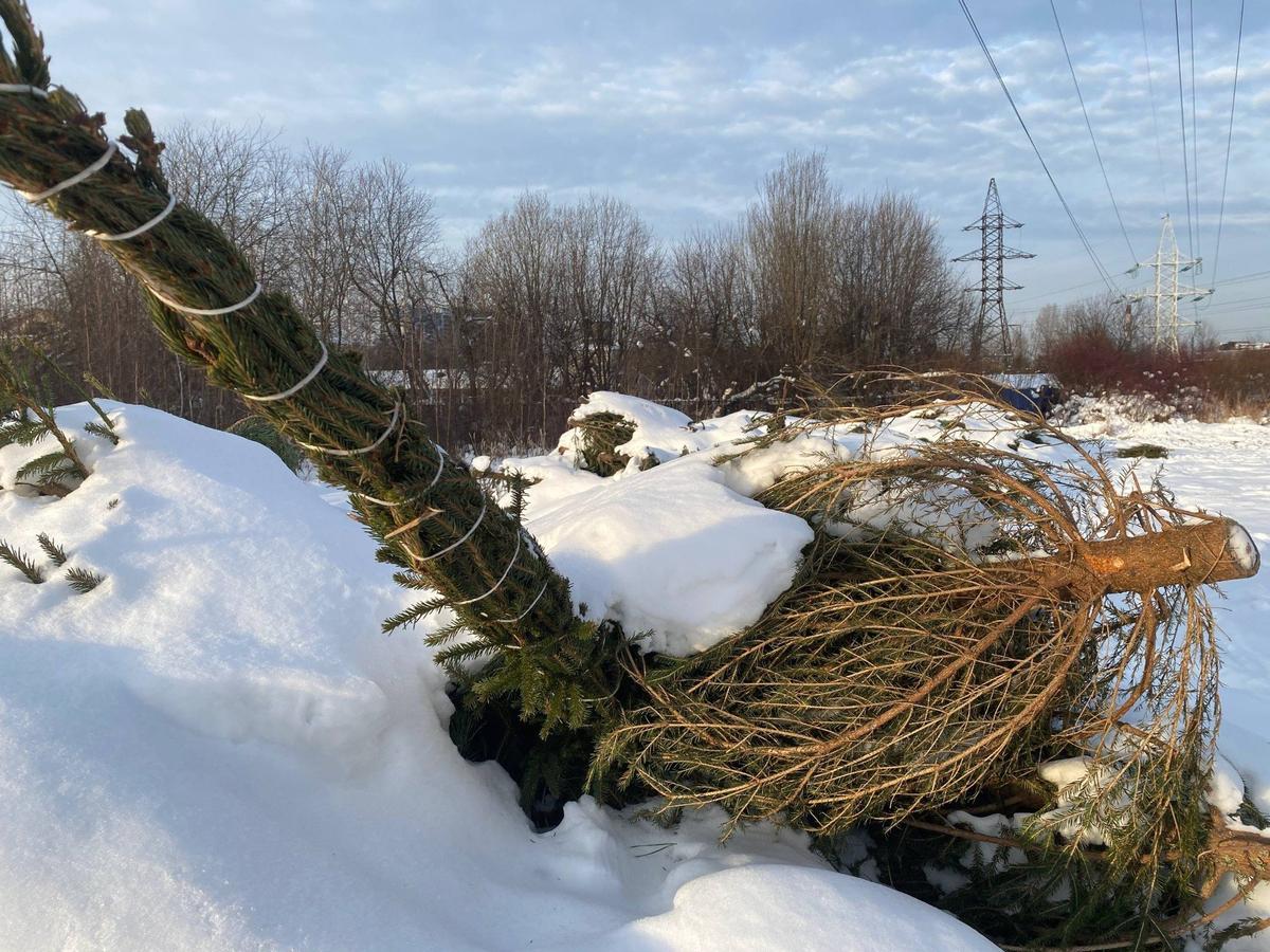 Более ста ёлок, выглянувшие на свет после убывания снежного покрова, валялись на парковке на улице Передовиков. По версии чиновников, нелегальные торговцы, отчаявшись сбыть товар опасным способом, побросали его здесь самое позднее вечером 31 декабря. Кого-то из продавцов, устроивших нелегальные базары в районе, удалось поймать еще раньше, и конфисковать деревья, отметили в администрации.