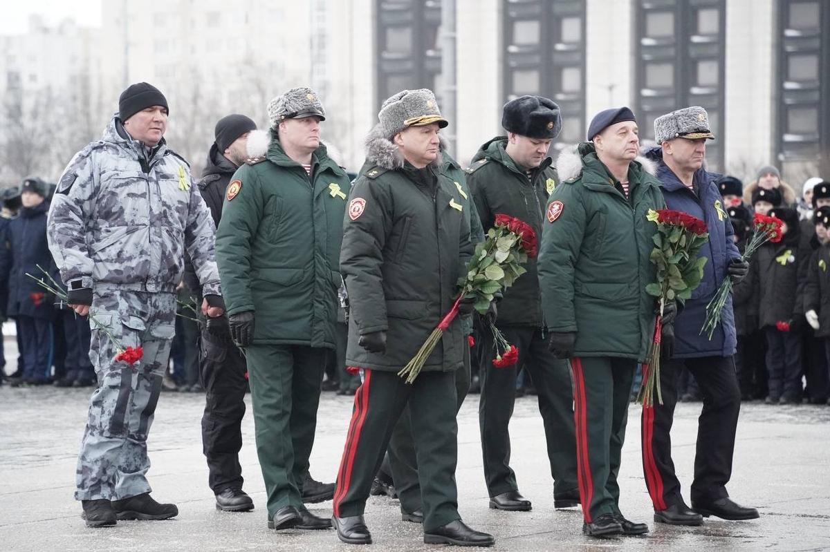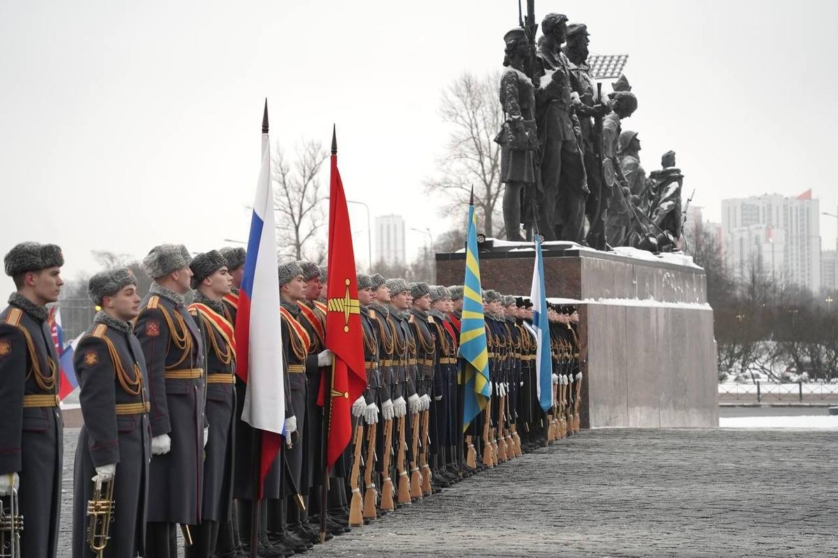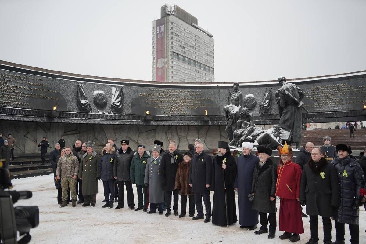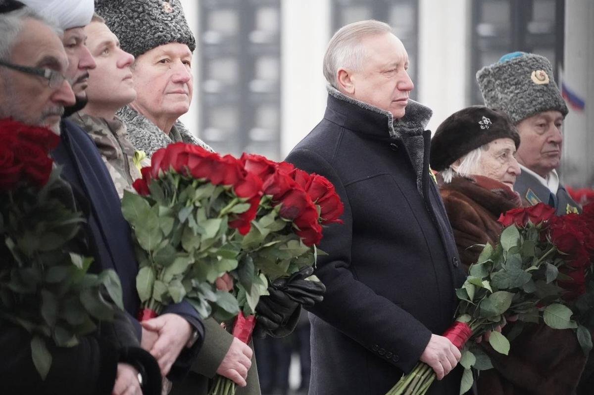 К монументу героическим защитникам Ленинграда возложили цветы государственные и общественные деятели. Помимо губернатора Александра Беглова и спикера ЗакСа Александра Бельского, мероприятие посетили депутаты городского и федерального уровней, представители духовенства и ветераны СВО.