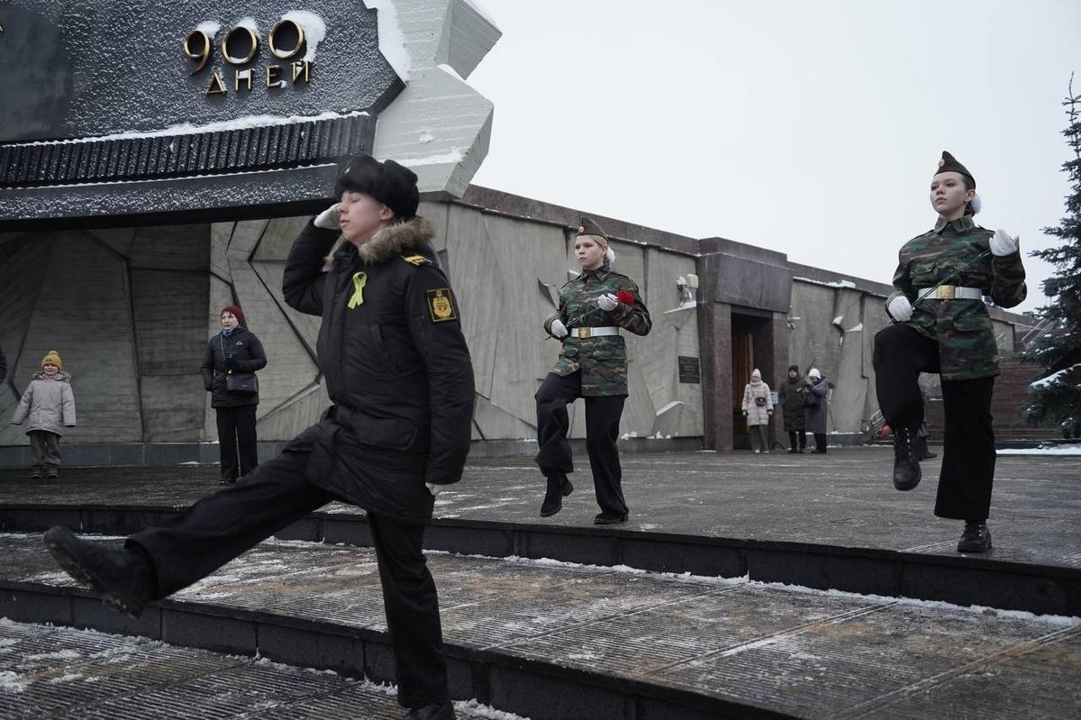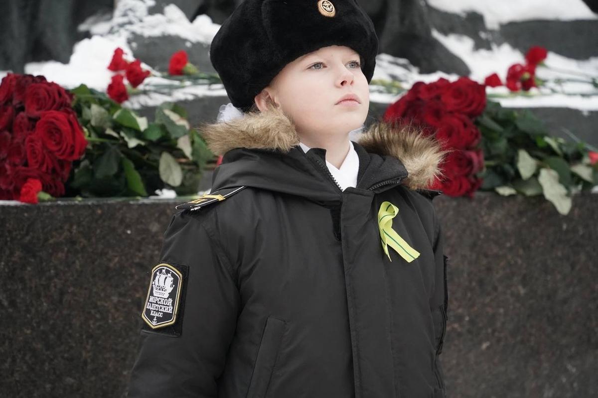 У мемориала 18 января поставили нести вахту детей, одетых в военную и военно-морскую форму.