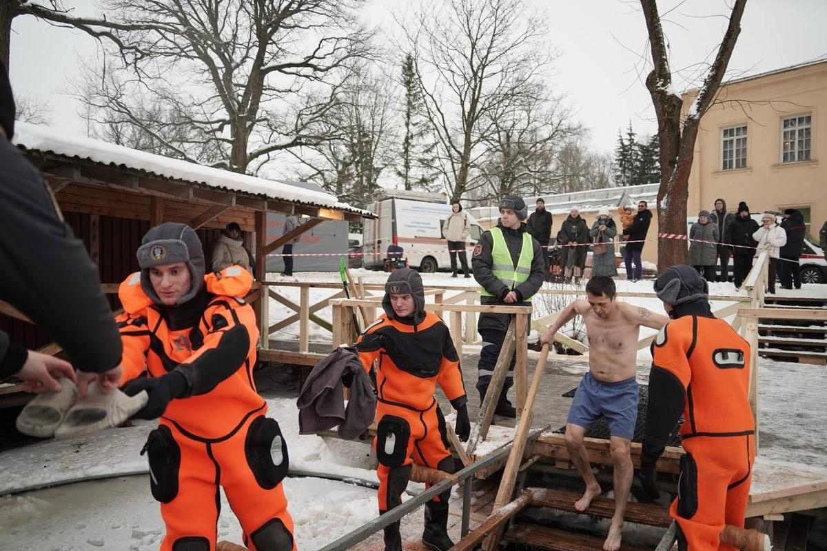 Одна из официальных площадок — иордань у монастыря Свято-Троицкая Сергиева пустынь на Петербургском шоссе в Стрельне. Попасть туда на богослужение сегодня можно до 17:00.