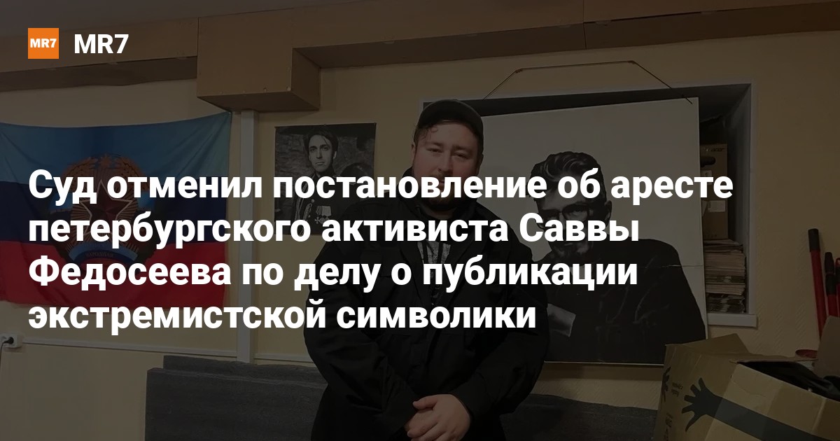 Ранее Федосеев был привлечён к ответственности по части 1 статьи 20.3 КоАП РФ (демонстрация экстремистской символики) за публикацию в интернете портрета Алексея Навального*, который внесён Росфинмониторингом в реестр экстремистов и террористов. Позже суд рассмотрел апелляцию и «смягчил» Савве административный арест на двое суток.